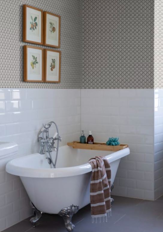 The simple details of country flowers set in a scallop shell motif form a subtle pattern that creates intimacy without being too visually demanding. The scallop shell is a symbol of the pilgrim, worn on the rucksacks of hikers that pass through the Béarn region on the famous Camino de Santiago, also known as the Way of St James.