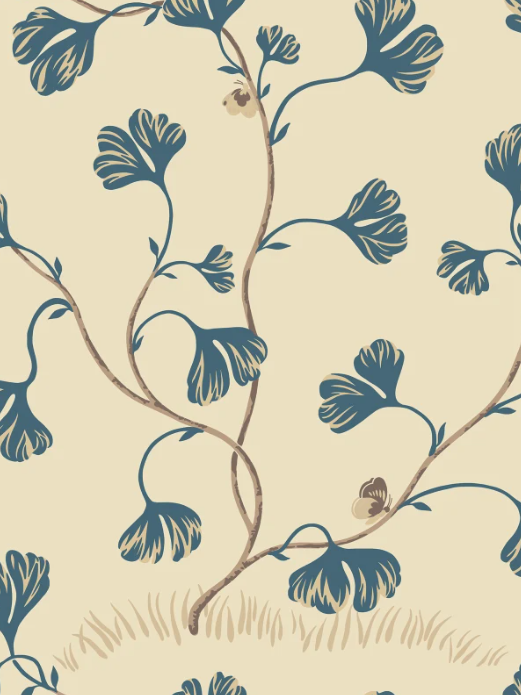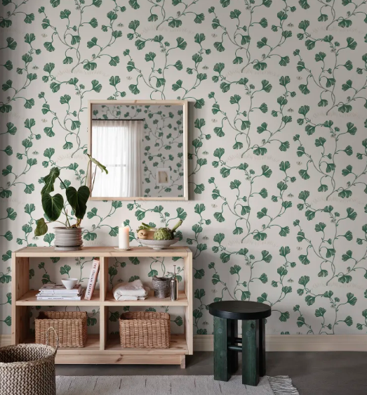 Winding ginkgo leaves dance gracefully alongside delicate butterflies, creating a serene botanical escape. The graphic simplicity and airy composition of Ebba enrich your space with elegance and charm. Perfect for those seeking a crisp and stylish expression in a home that celebrates nature’s quiet beauty.