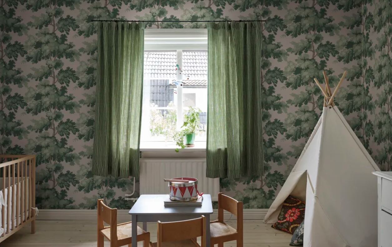 Raphael is one of our most popular wallpapers. The pattern gives you treetops in a wide range of color combinations. The inspiration for this pattern was partly taken from Central Park in New York - a leafy park surrounded by glass-and-concrete skyscrapers and a beautiful contrast to the bustling city. The pattern is also inspired by antique tapestries, where stylised leaves are often shown in fields of light and shade.