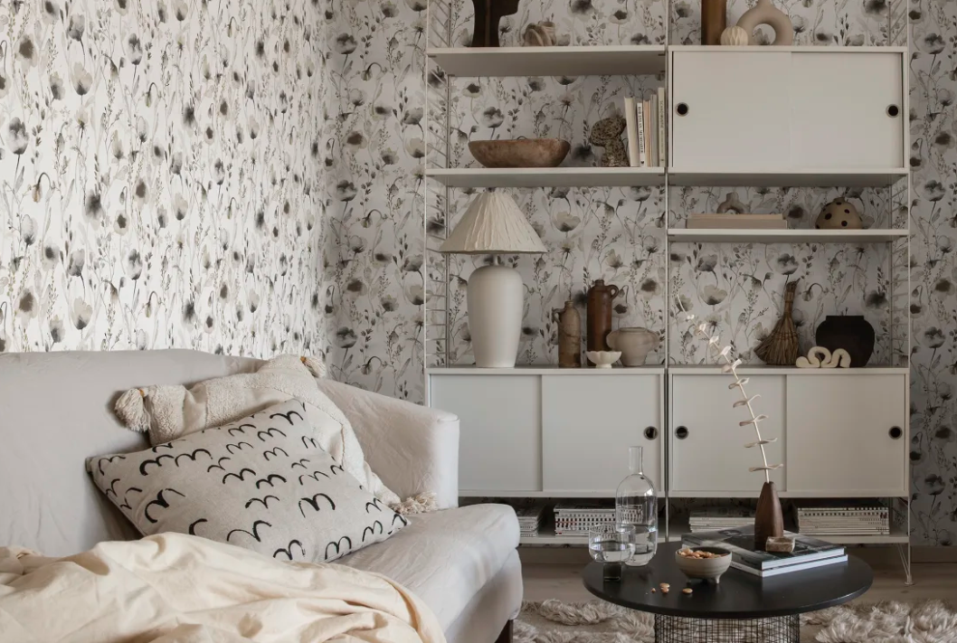 Create an atmospheric impression with soothing watercolors, beautiful poppies, and delicate twigs. Lo gives the walls a vibrant and modern character.