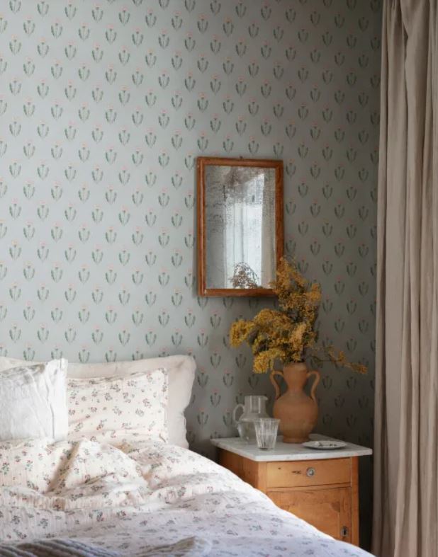 This design is part of the collection inspired by Carl and Karin Larsson, an iconic and beloved Swedish design family active in the 19th century. The design duo still inspires the whole world with their artistry, their home, and their way of living. This hand-painted design adds beauty to your home. Maskrosen is a natural and simple design yet a wallpaper design that communicates a cool and stylish attribute and adds beauty to your home. The stylized hand-painted dandelion wallpaper design is a symbol of the Karin & Carl Larsson family. They were the great influencers of their time. This flower is overlooked by so many but was uplifted by Carl as a symbol for the family’s fighting spirit and stubbornness. If you visit their home, Lilla Hyttnäs in Dalarna, don’t forget to look at the very top of the wall in Carl’s studio, where you can find stylized hand-painted dandelions.
