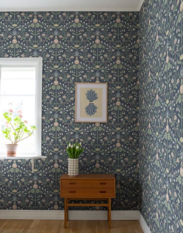 This design is part of the collection inspired by Carl and Karin Larsson, an iconic and beloved Swedish design family active in the 19th century. The design duo still inspires the whole world with their artistry, their home, and their way of living. Karin gave Carl the door curtain called "Kärlekens ros" (The rose of love) on his name-day. When Carl was out traveling Karin found time to, in secrecy, create this beautiful weaving that was filled with loving symbols. She made it thinly woven and double-sided to allow the sunlight to come through and eye contact between the spouses from their separate bedrooms.